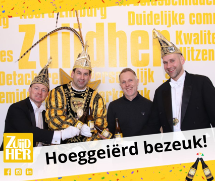 Boëte zien drukke programma, kwaom, afgeloëpe weekend, Preens Bart 1 (Joosten) met zien adjudante Dave Schouten en Rob Joosten op bezeuk beej Zuijdher. Bedankt vur ‘t schonne bezeuk en geniet ván de Carnaval!